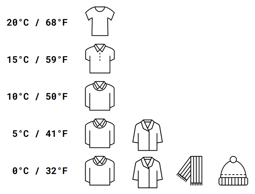 Wear layers. It's better to take two light-weight shirts that can be worn together than one heavy-weight top.