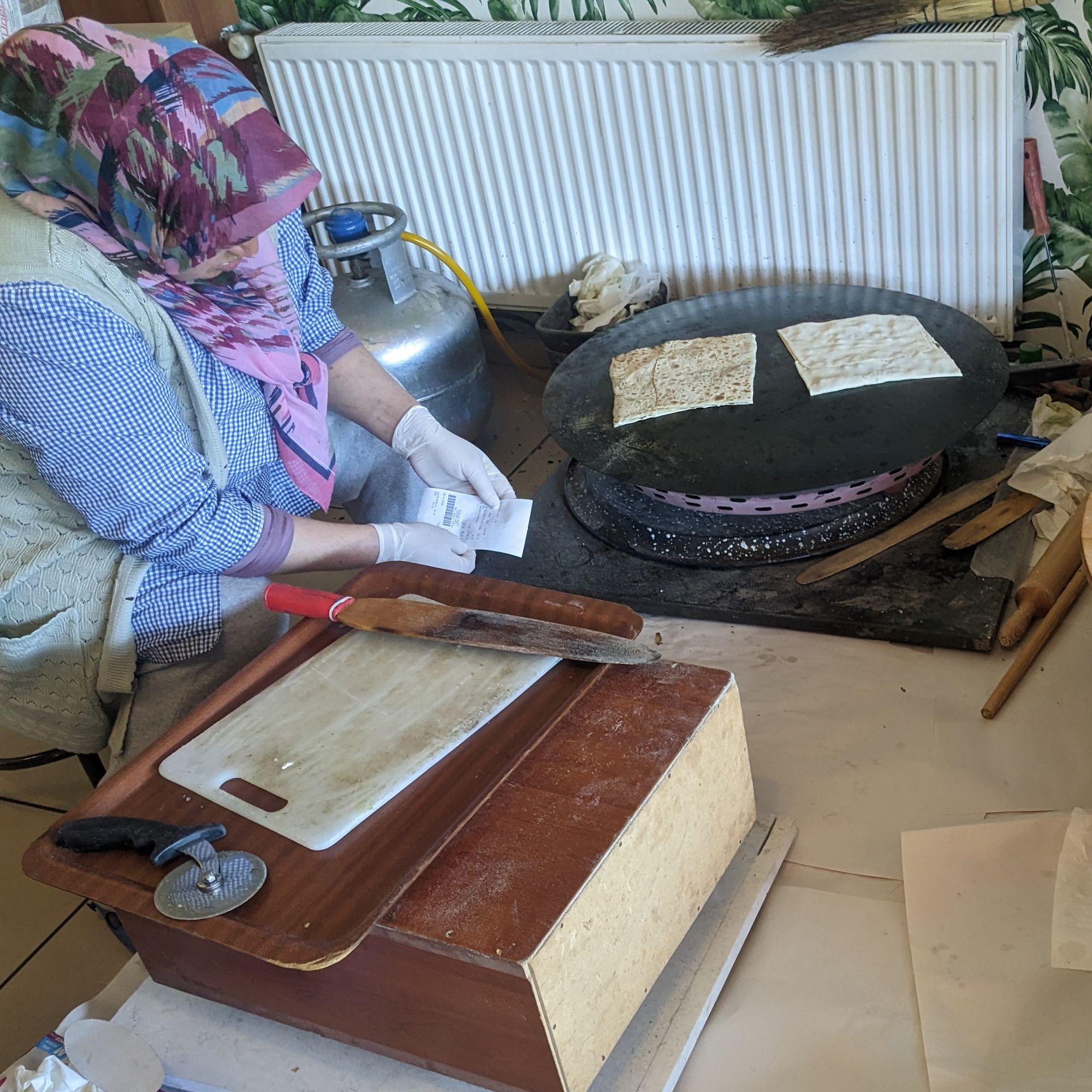 We boarded our coach at the Eminönü bus terminal. Our tour group was close to one-third Kiwis and the rest Australians. Half the group were current or former defence force personnel, and a quarter had relatives who had served in the armed forces. Five or so had brought their or the family's medals to wear. The rest of our group came out of patriotic or historical interest. We stopped near Tekirdağ for a break, where some local Turkish grandmothers made us gözleme.