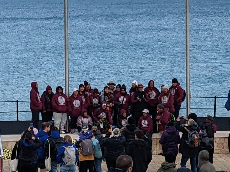 When we reached ANZAC Cove, many other tour groups had arrived before us. Most of them had custom ANZAC Day 2023 hoodies. All the ones I saw had printed a reading by Ataturk on the back.