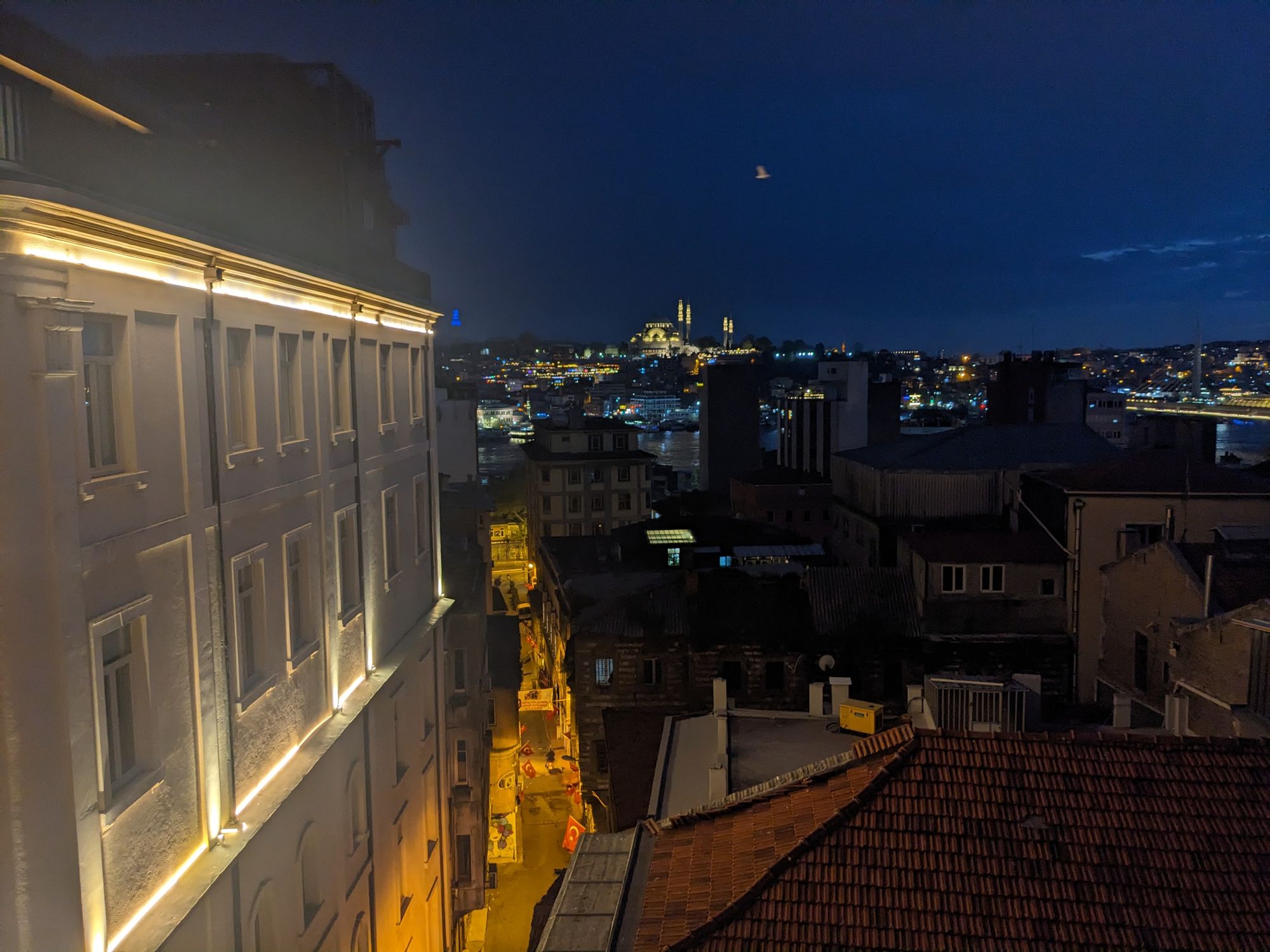 Our bus arrived at 13:30. We had been awake since 5am, climbing hills and standing for the services, so we slept soundly all the way to Istanbul. I walked from the Eminönü bus terminal across the Golden Horn bridge to my hotel in Galata and fell asleep straight away.
