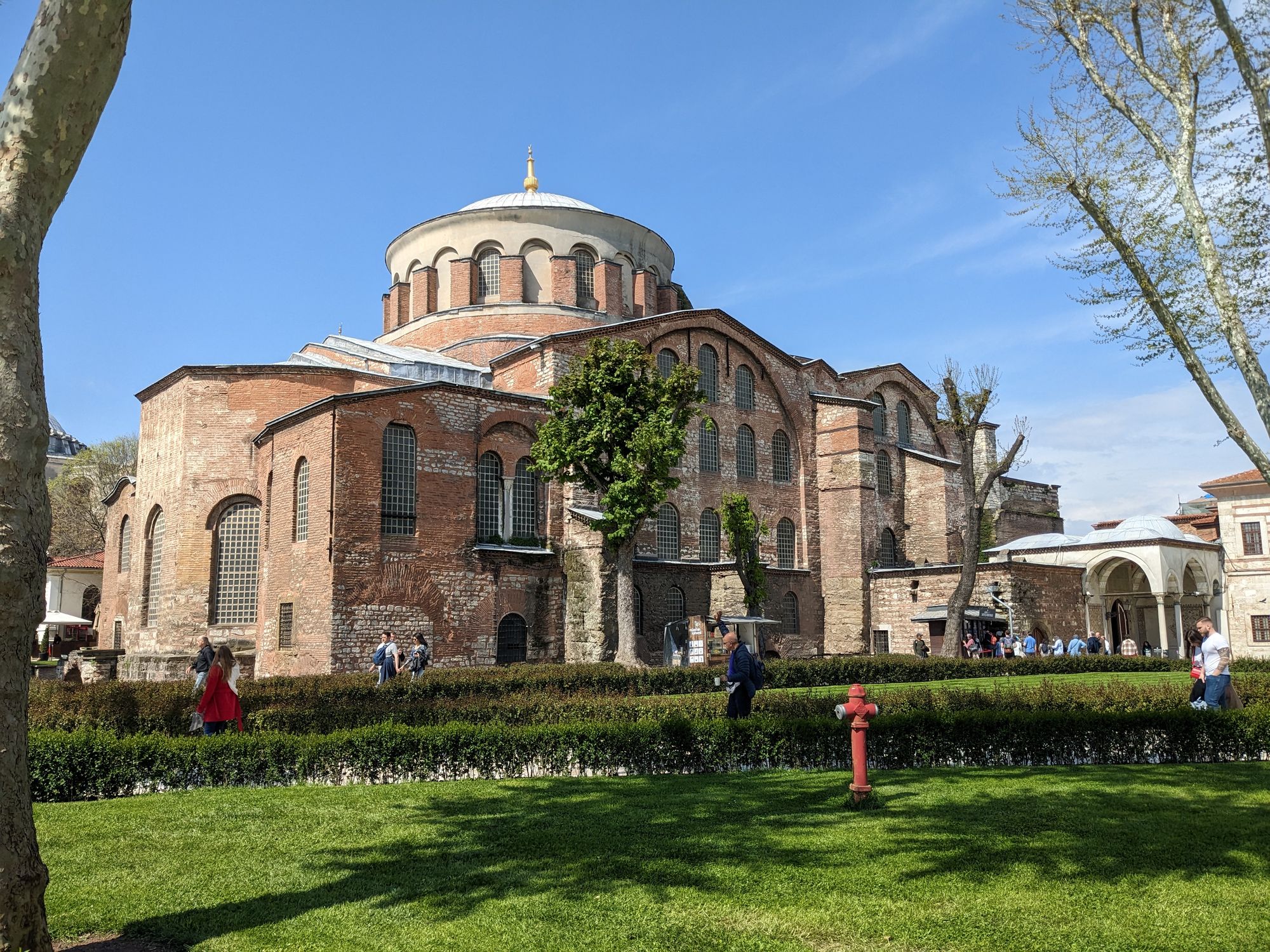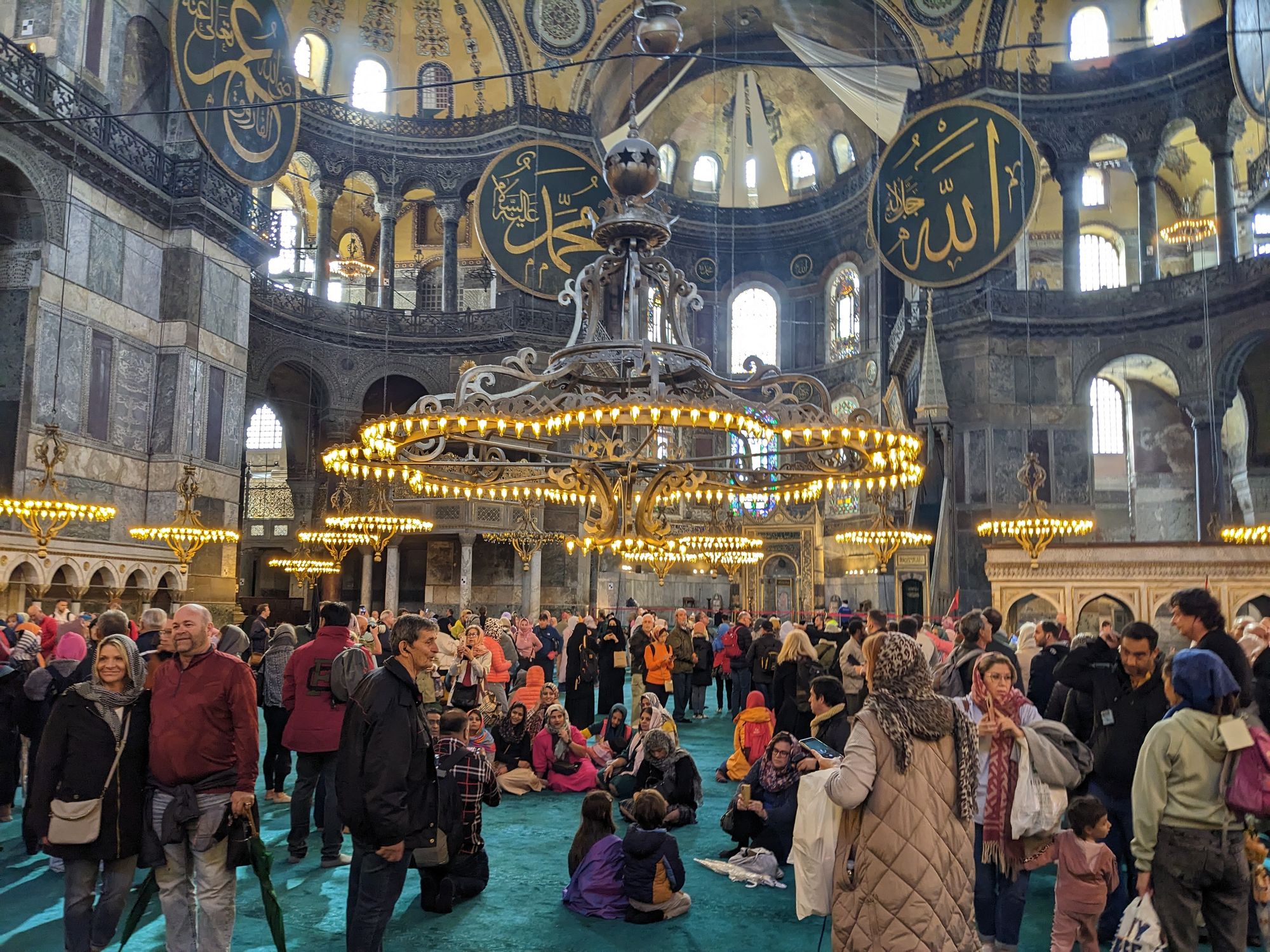 Hagia Sophia has been many things. From 360 to 537 it was a construction site. For the next 1,093 years it was an Eastern Orthodox Church, with a brief interlude as a Catholic Church from 1204 to 1261 thanks to the Fourth Crusade. It was converted to a mosque in 1453, made into a museum in 1935, and converted back to a mosque in 2020, which is what it was when I visited.