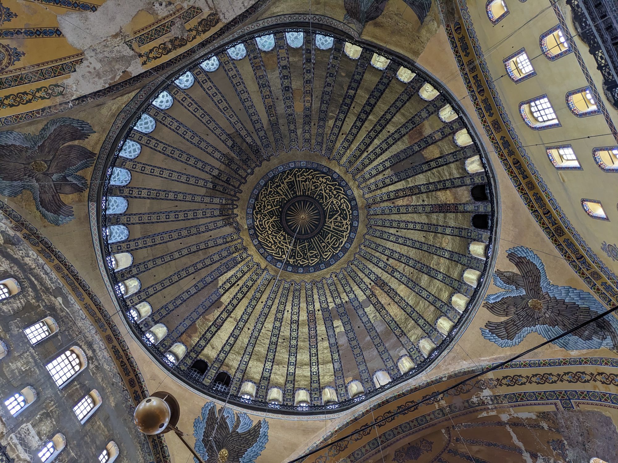 During our tour, three years after Hagia Sofia had gone from museum back to mosque, most faces had been re-plastered. However, one of the four angels in the dome's corners still had its face, which is why some Muslims still won't pray in Hagia Sofia.