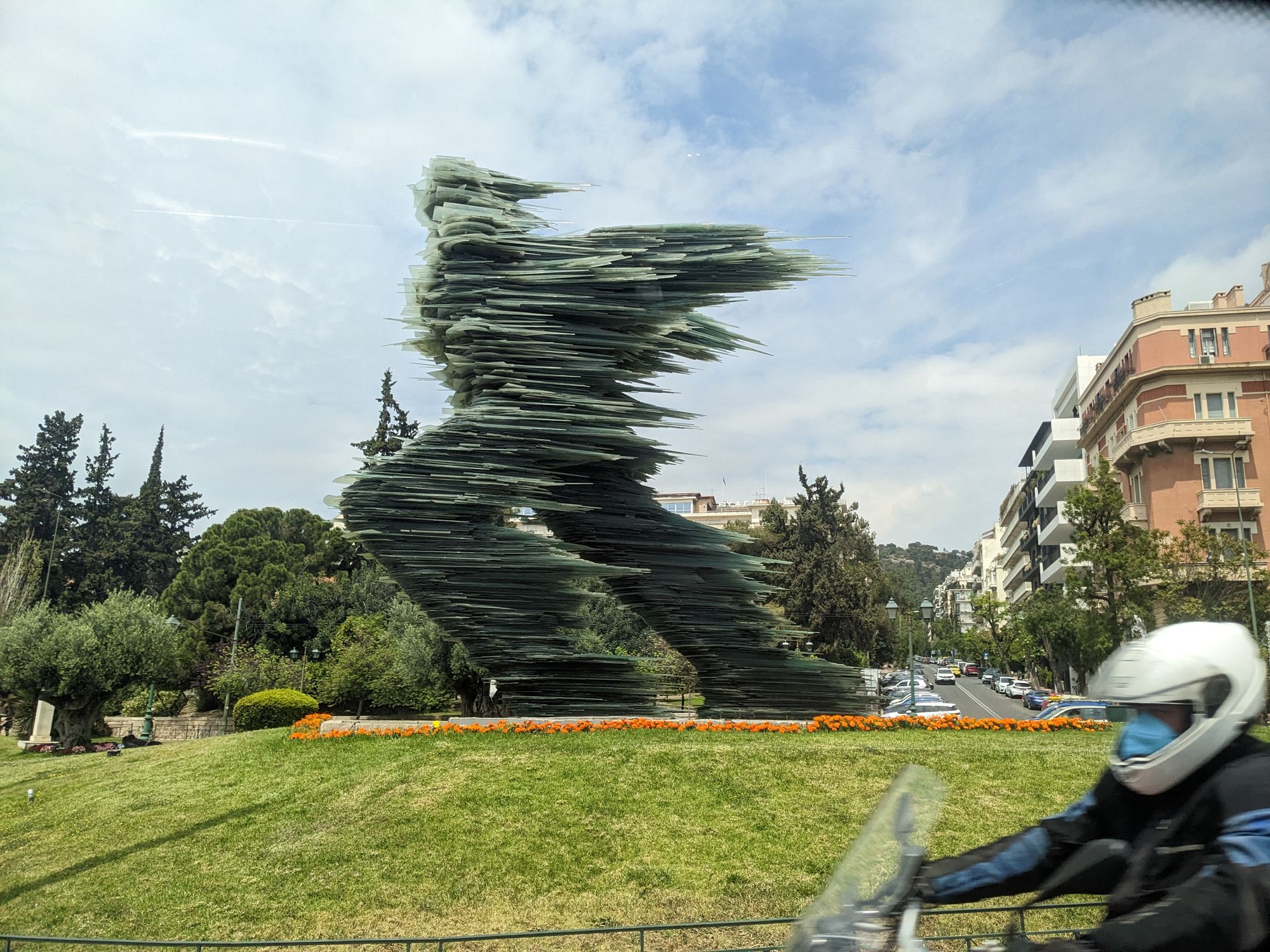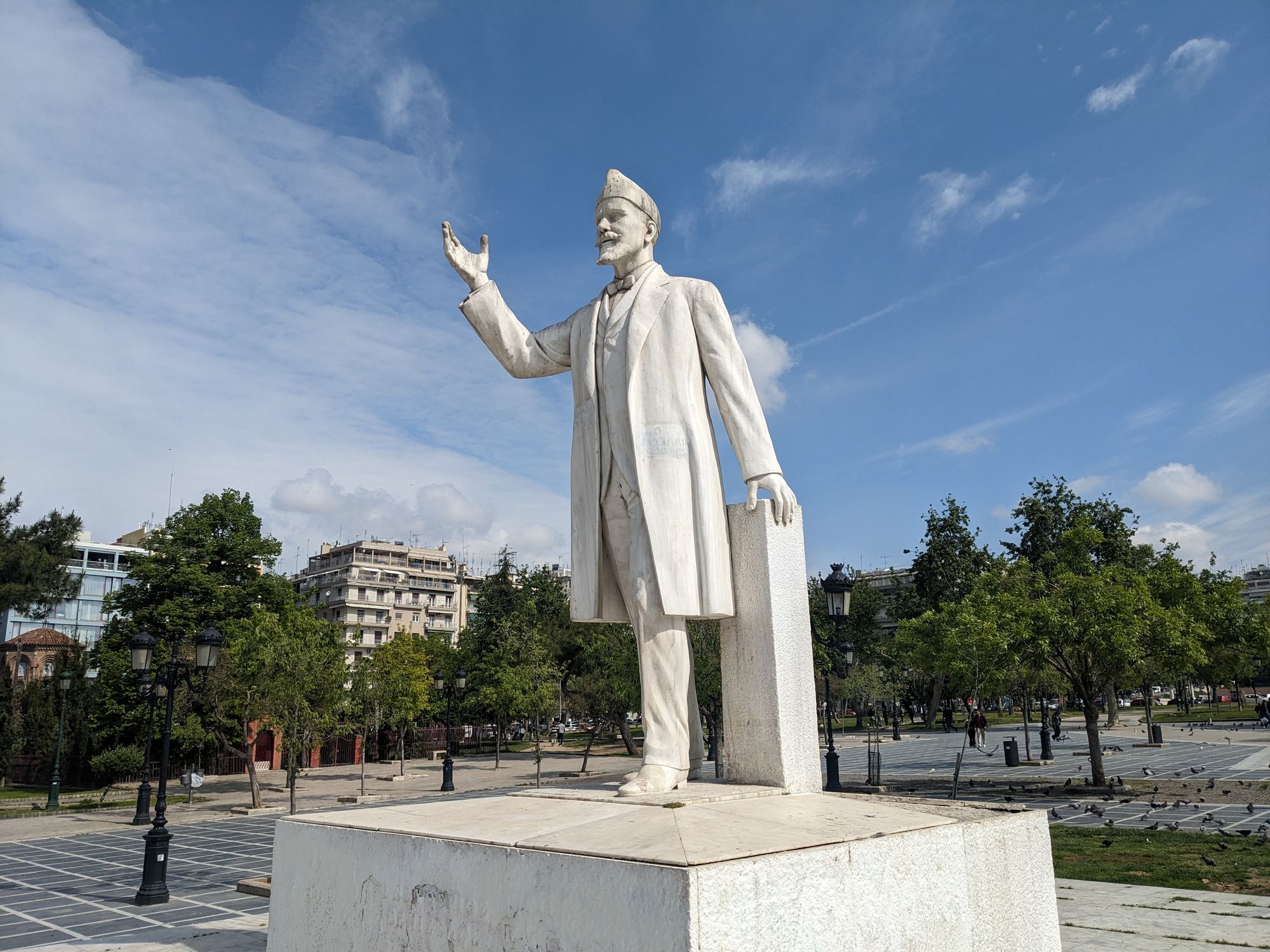 After the tour I boarded the coach to Thessaloniki. At the border crossing we stood around for 30 minutes, admiring the North Macedonian flag behind us, the flags of Greek and the European Union before us. We reached Thessaloniki just before sunset.