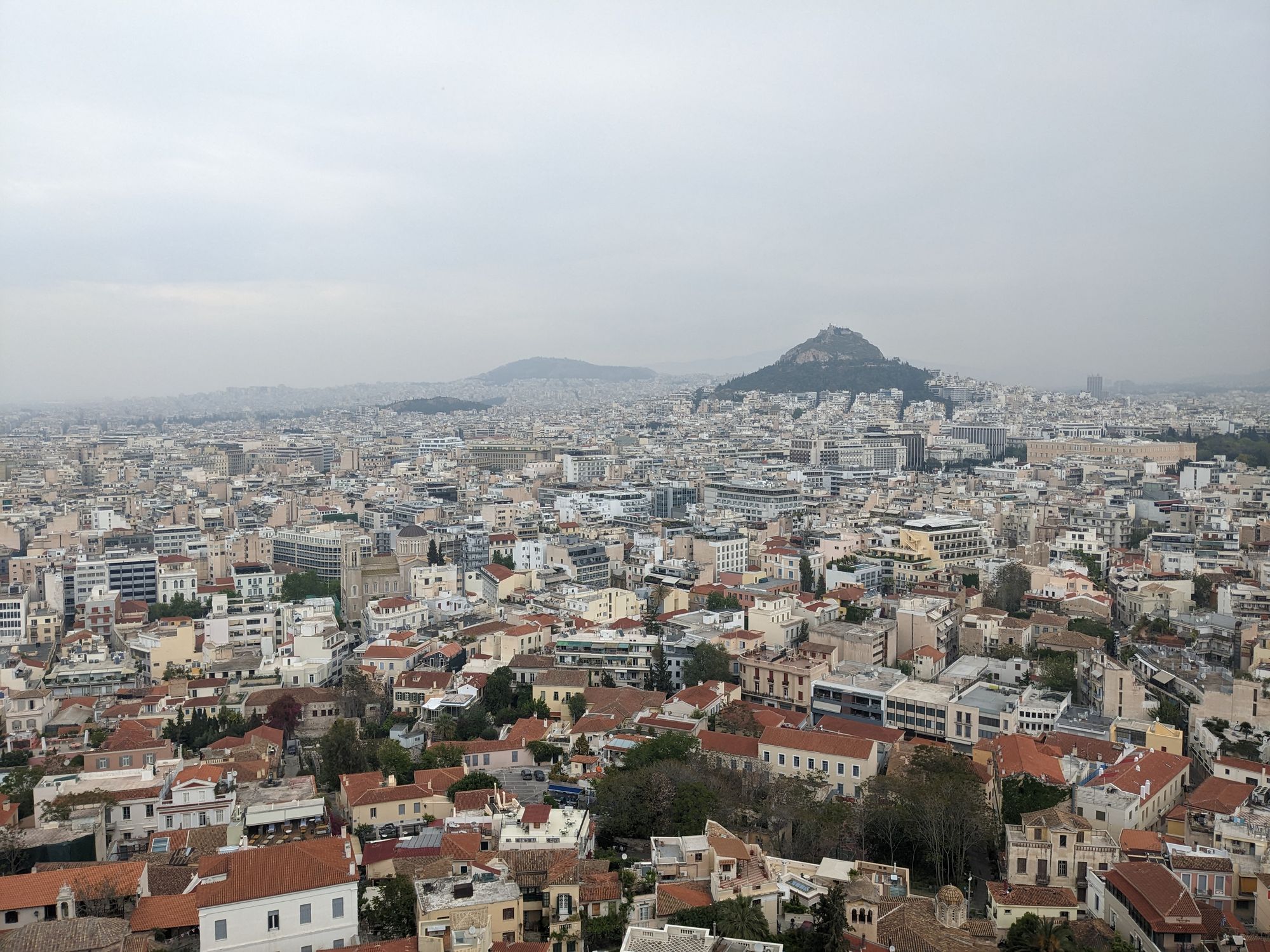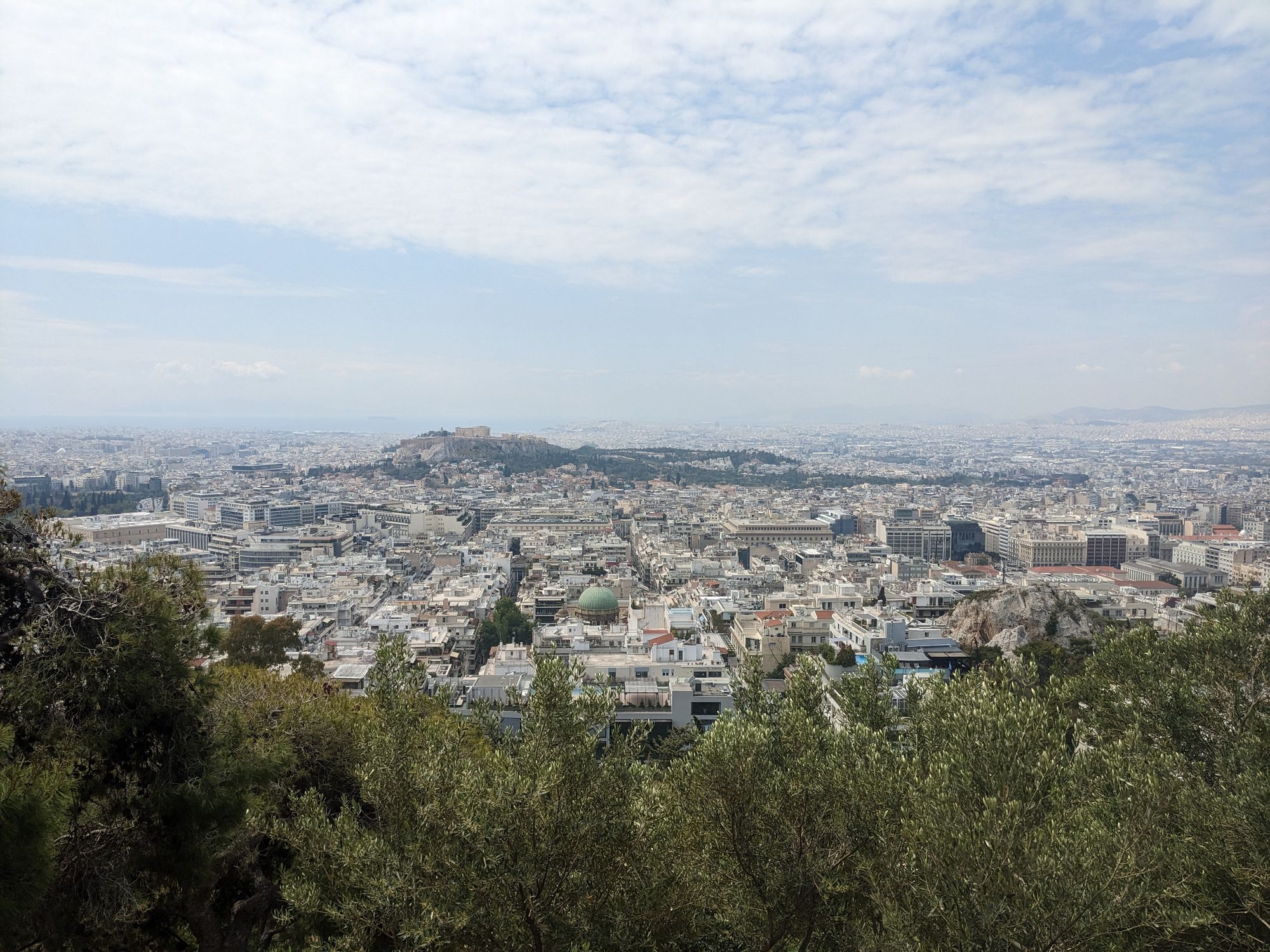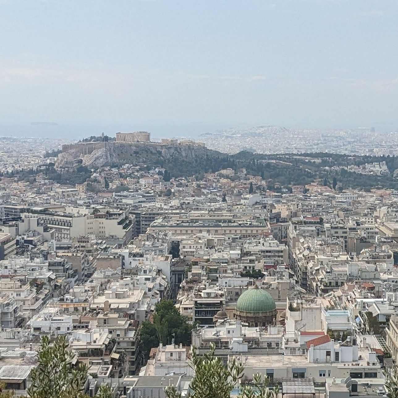 Finally we drove up the Lycabettus Hill, the highest point in Athens at 277 meters. From the top you can see the Acropolis, which is only 150 meters, but still looks lovely from afar.