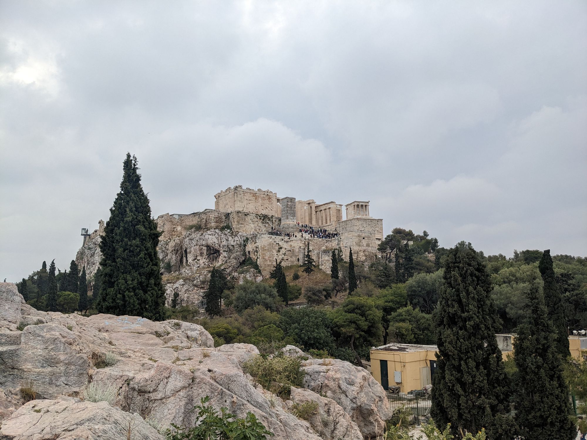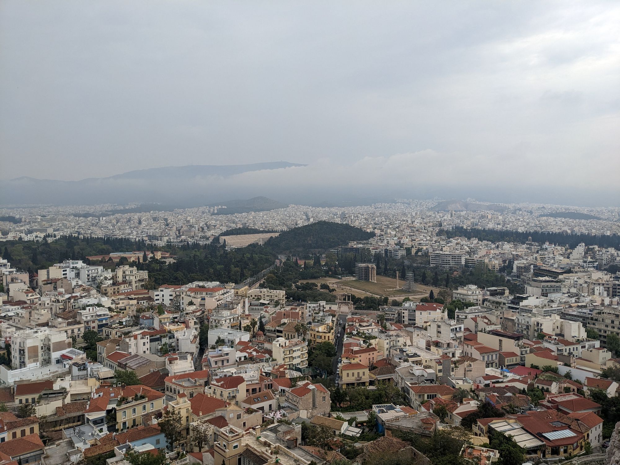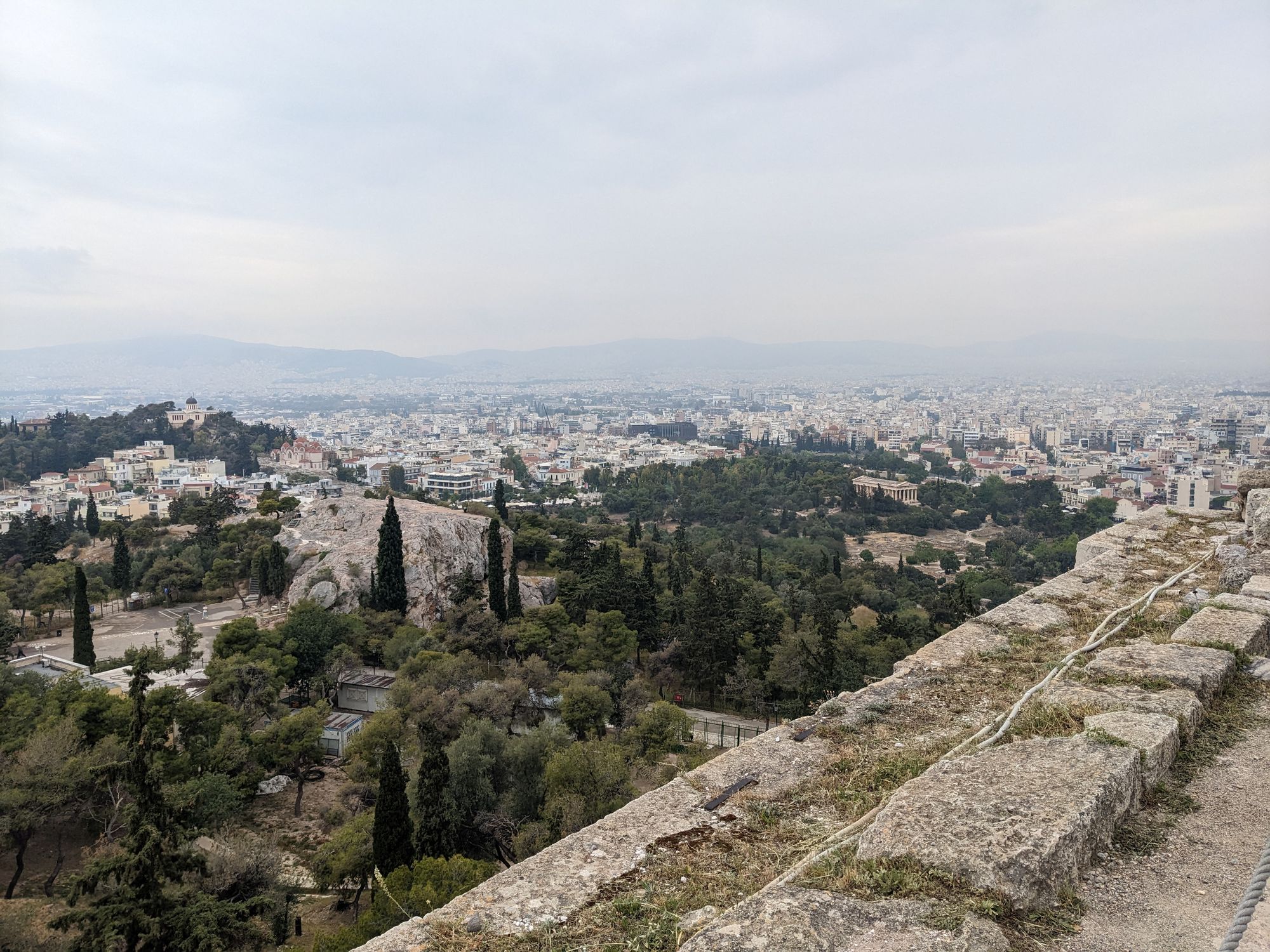 Finally we drove up the Lycabettus Hill, the highest point in Athens at 277 meters. From the top you can see the Acropolis, which is only 150 meters, but still looks lovely from afar.