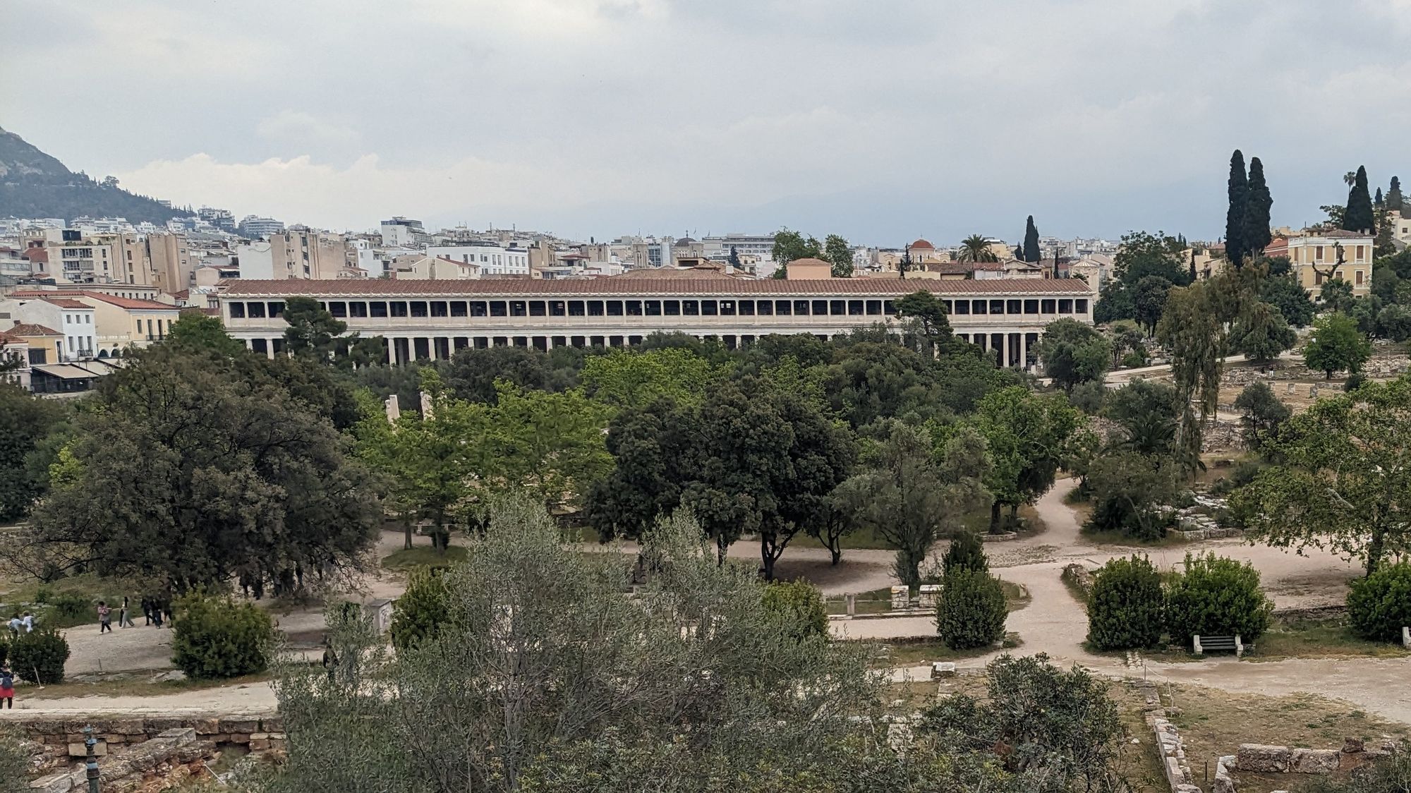 Down from the Acropolis is the Agora of Athens, an archaeological site in Athens that was once the center of civic life in ancient Greece. It was a marketplace, a gathering place for citizens and the location of several important government buildings.
