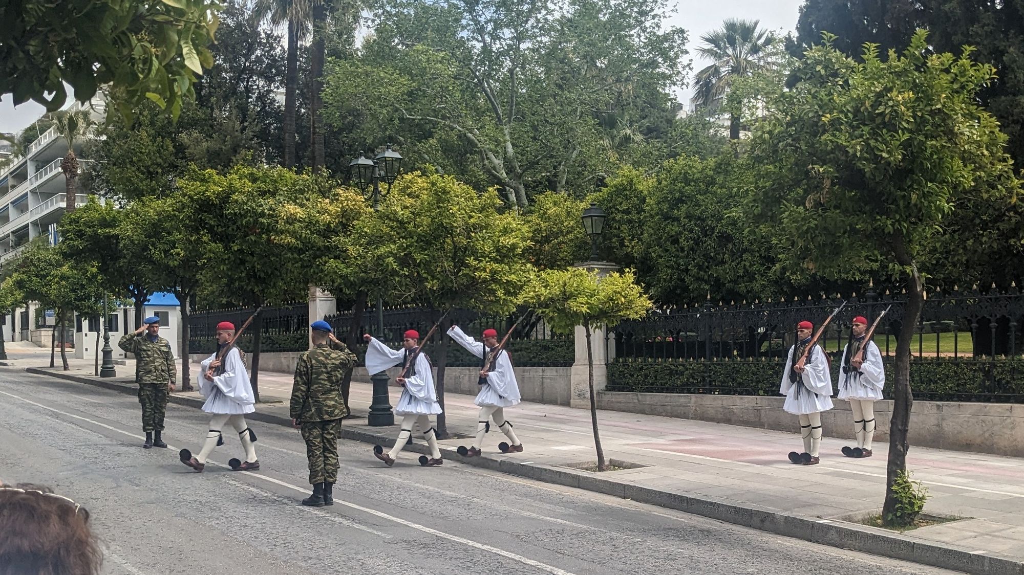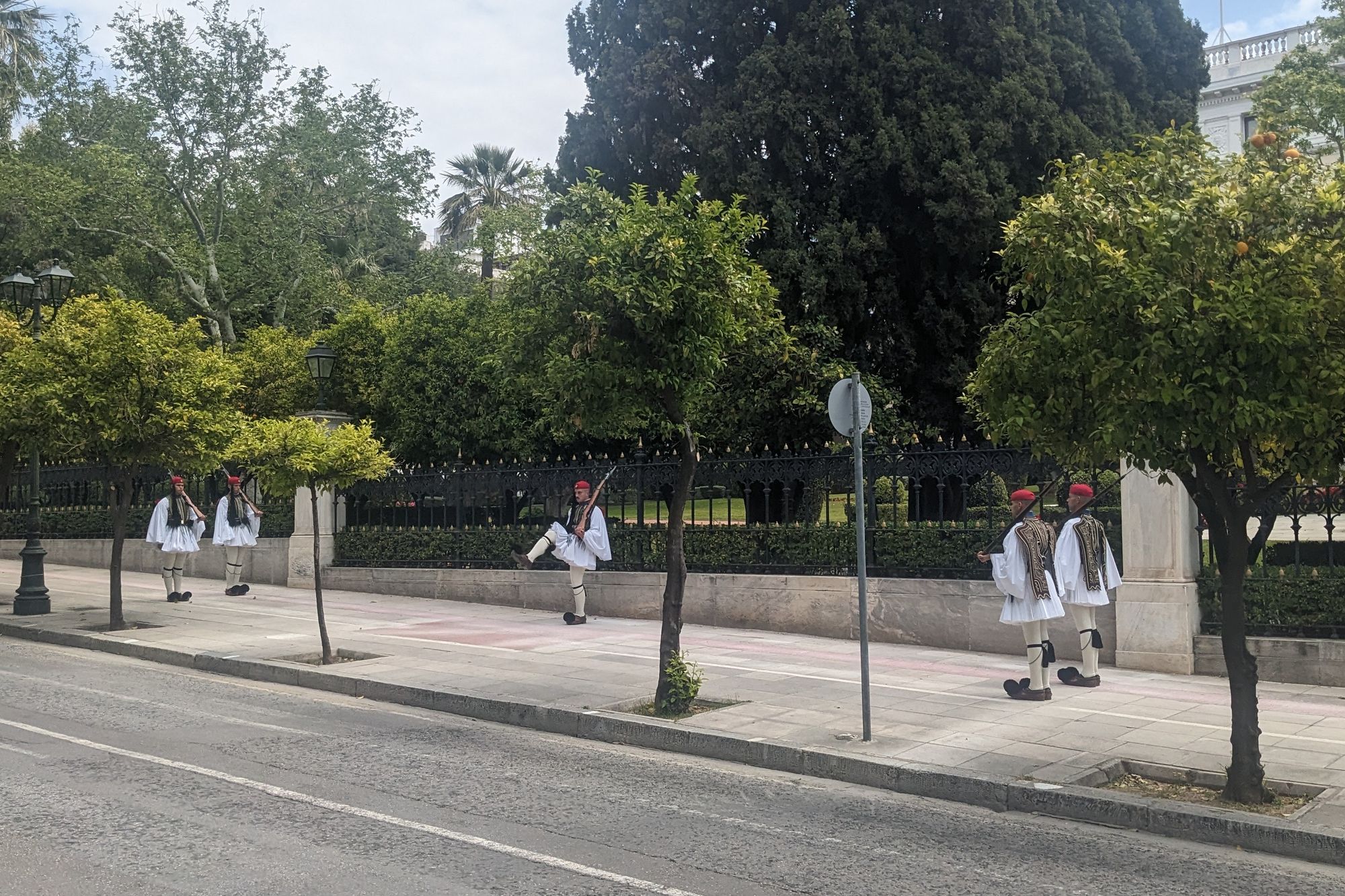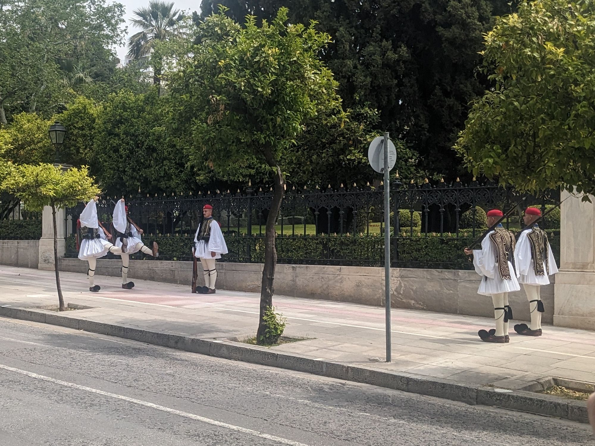 Just north of the Panathenaic Stadium is the Presidential Palace, where the extravagantly-dresssed soldiers, known as Evzones, stand watch and change guard every hour. This was my guide's favourite part of the tour because he was an Evzone during his military service.