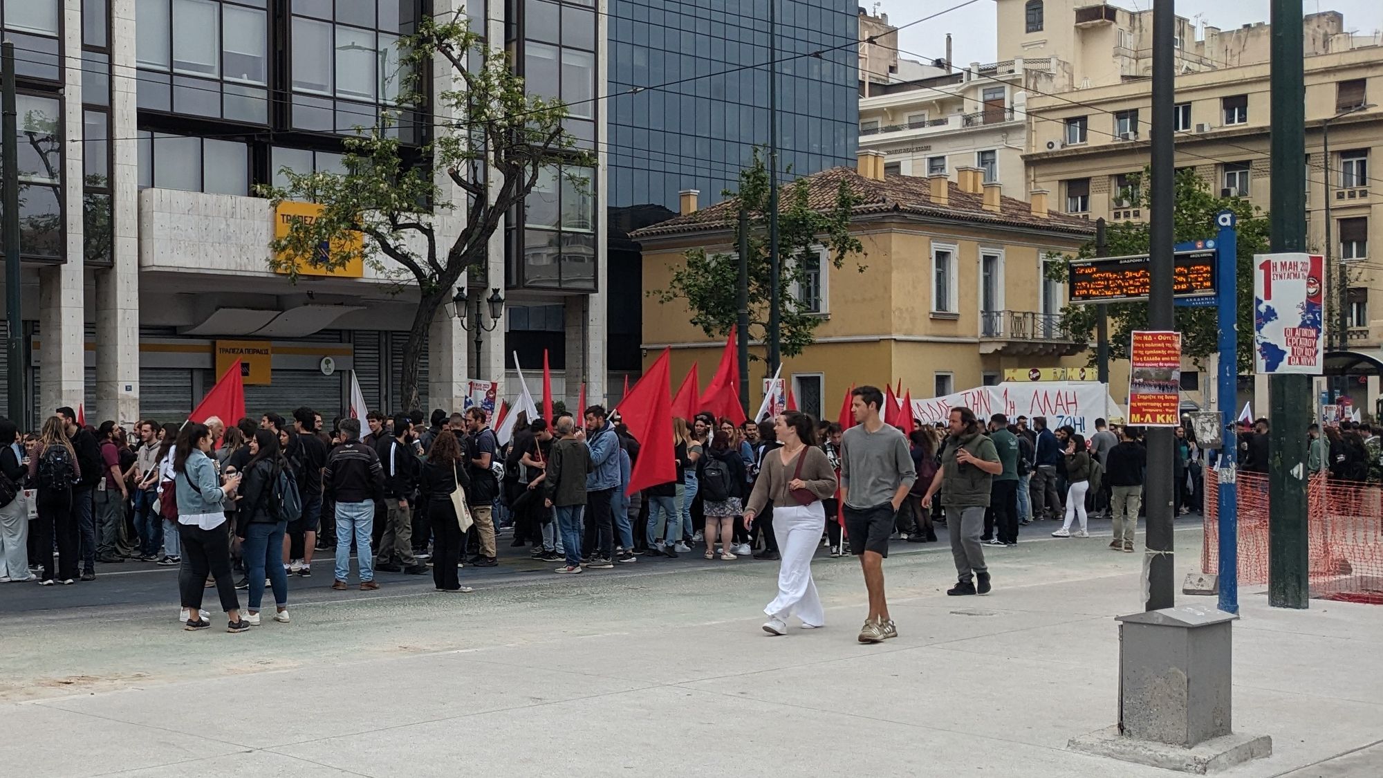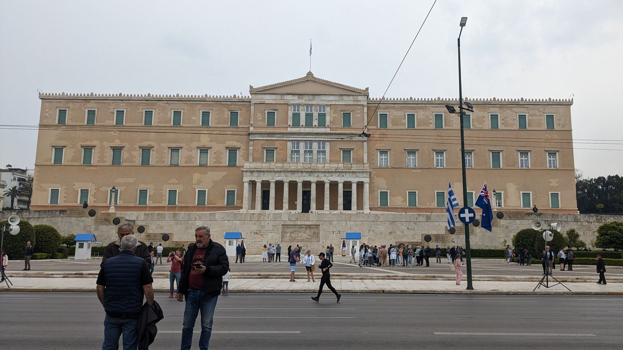 At the Syntagma Square, the metro station was closed but that hadn't stopped a mob of labour activists assembling outside the Parliament. Most in attendance waved red banners, Greek flags and, strangely, Australian flags. No other national flags, just Greece and Australia.