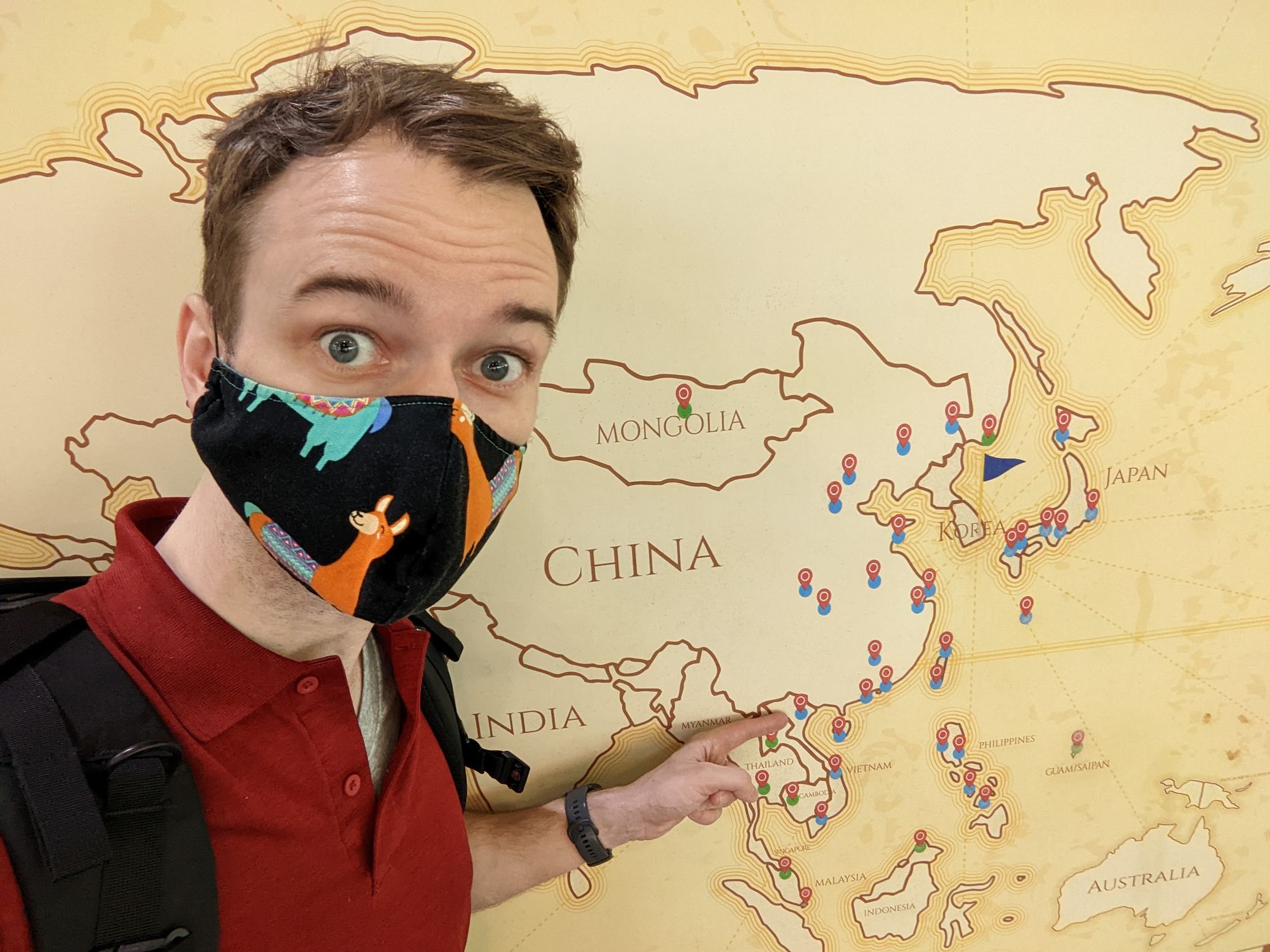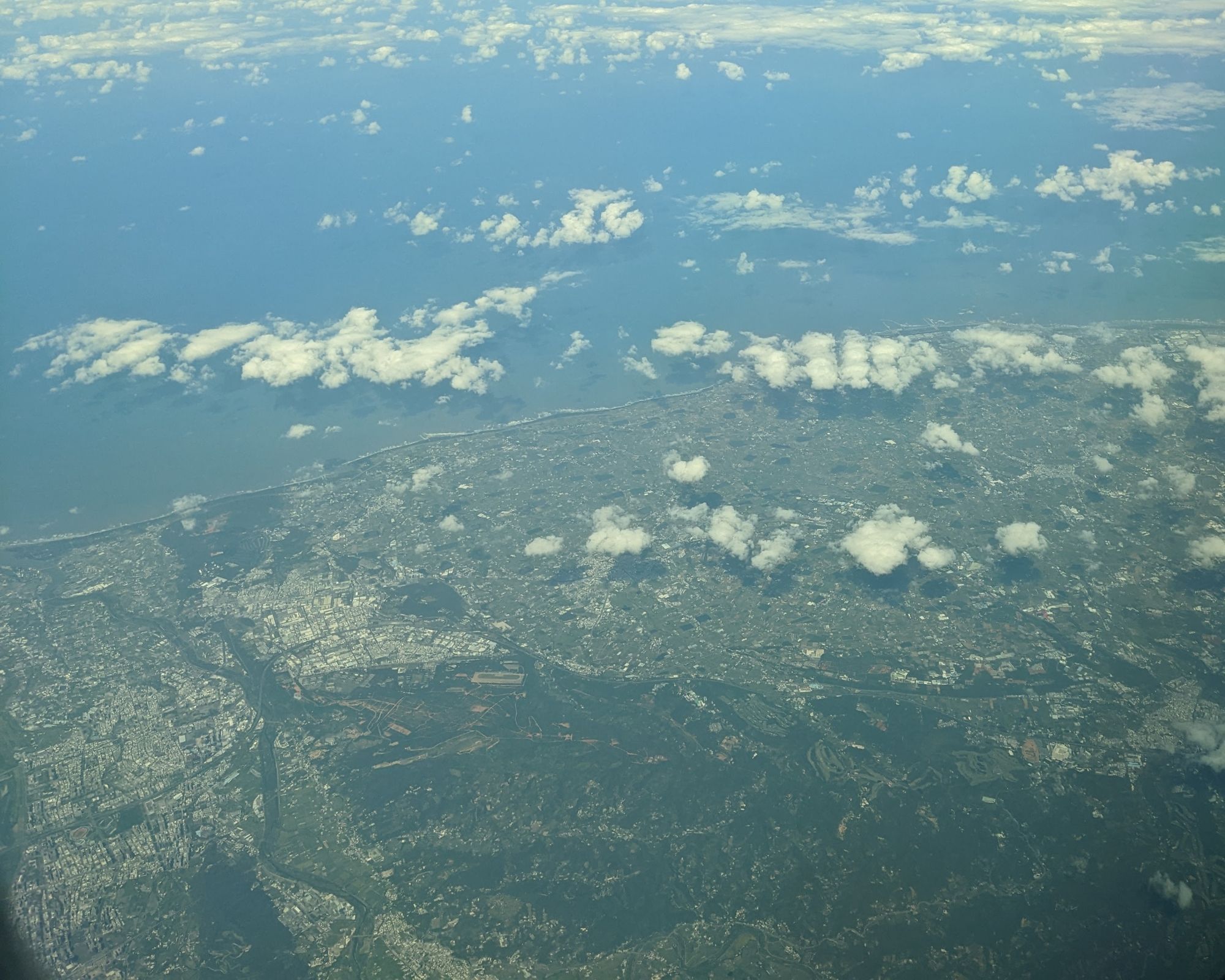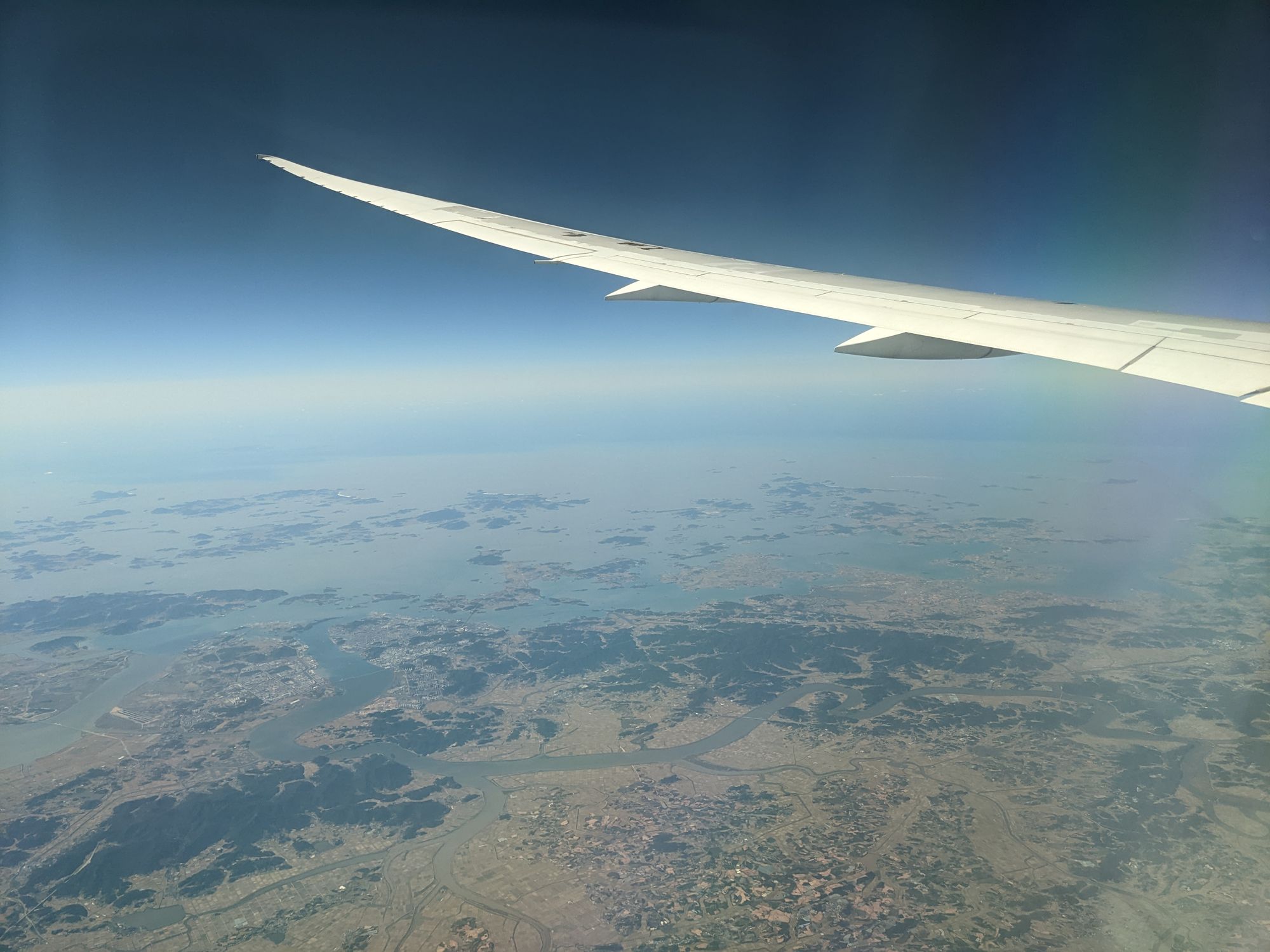 We flew right over Taiwan, catching a glance of the south-west coast. It looked like a cool place, worth visiting soon.