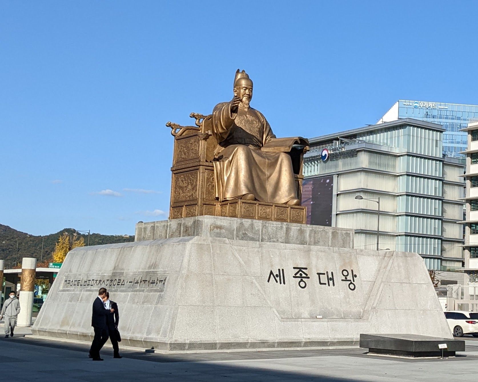 We then walked down the Sejong-Daero, a public place before the Gwanghwamun, the main gate to the old Joseon palace, Heungnyemun. Many Koreans wear traditional clothing near the Heungnyemun because if they do so they get a discount on the entry fee.