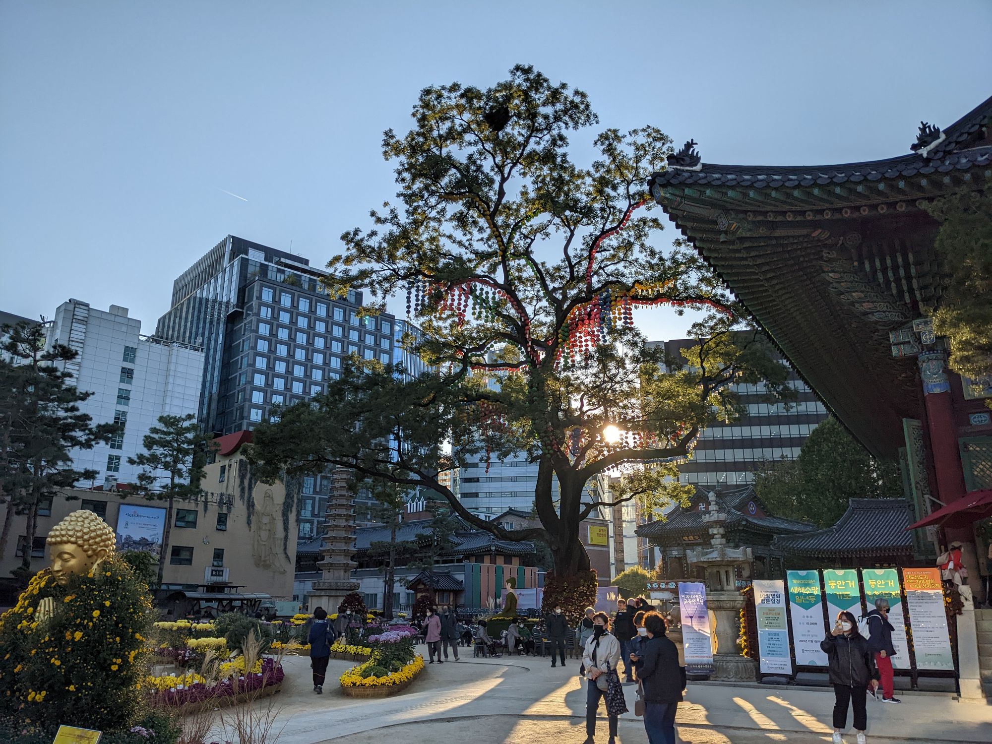 Our first stop was the Jogyesa temple dedicated to Seon Buddhism, a Korean variety of Buddhism and known in the West as Zen Buddhism. Seon emphasizes meditation rather than academics as in other schools of Buddhism. The temple was established in 1395, three years after the founding of the Joseon, who ruled Korea from 1392 to 1897. Then the Japanese came, the war happened and it’s all post-war from there.