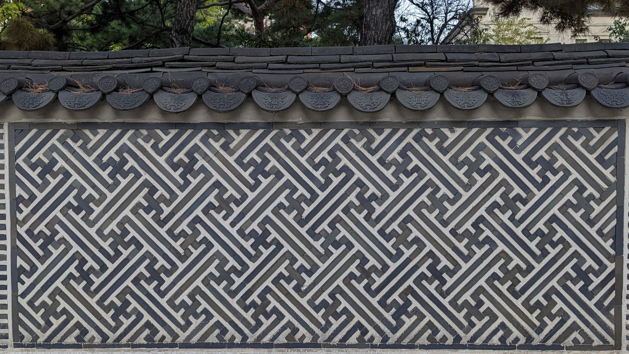No good door can stand without a good wall astride it. The walls in Seoul were rife with simple, geometric, beautiful patterns. The black pattern below appeared regularly across Korea.