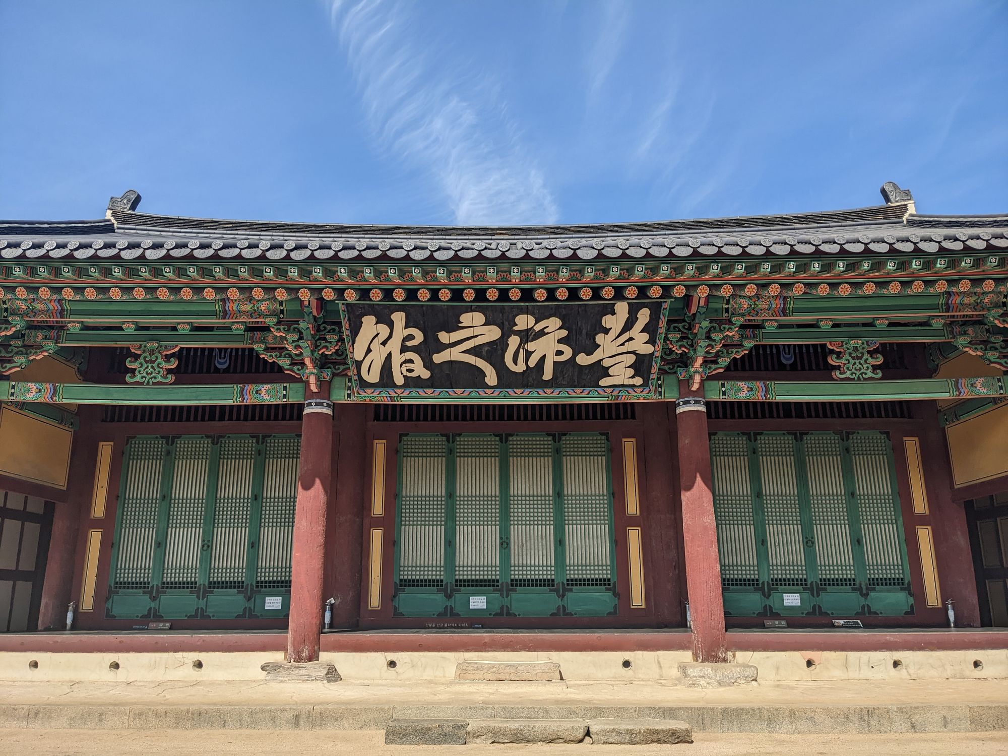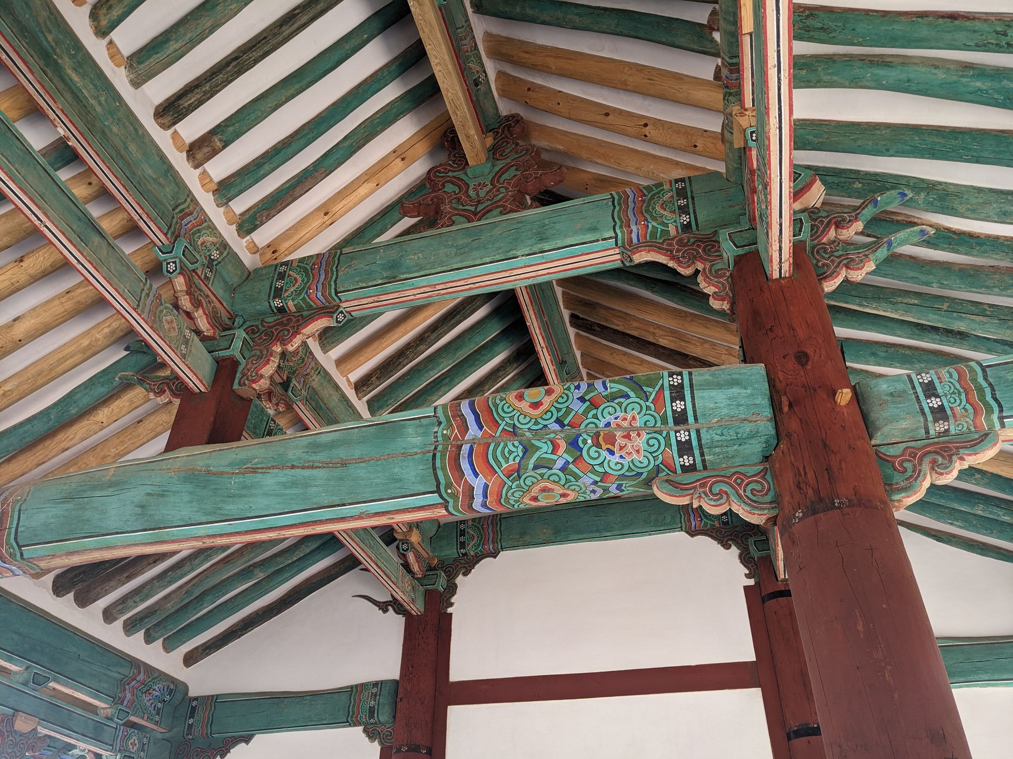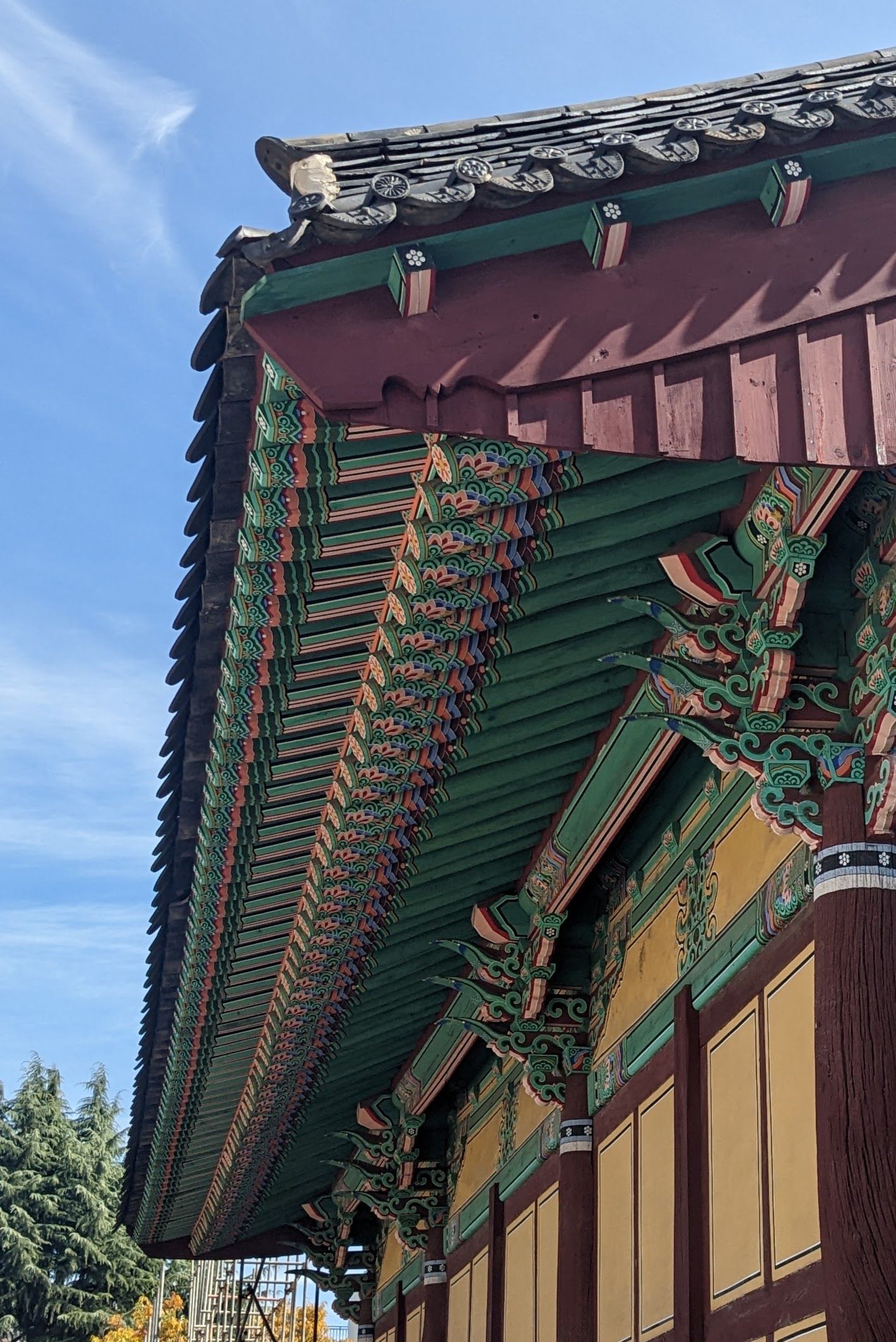 This used to be a guesthouse for travelling dignitaries. It looks every bit like it was built in 1473 (or thereabouts) because it has the brightly painted green eves and gables of the early Joseon period.