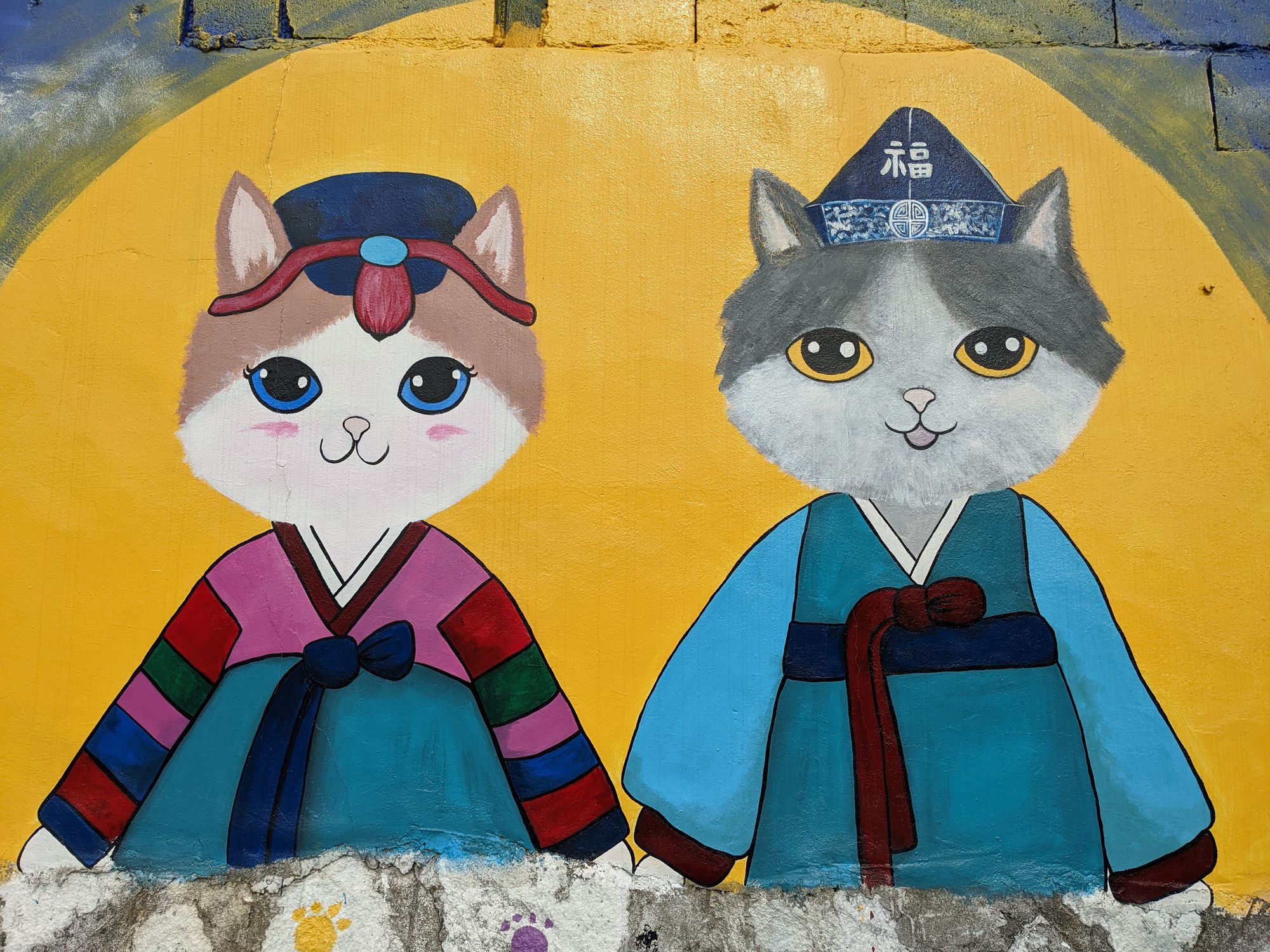 The hanok village is bordered to the south by the Jeonjuchun river. Along that river sits many fine houses, sturdy bridges and one rascally cat.