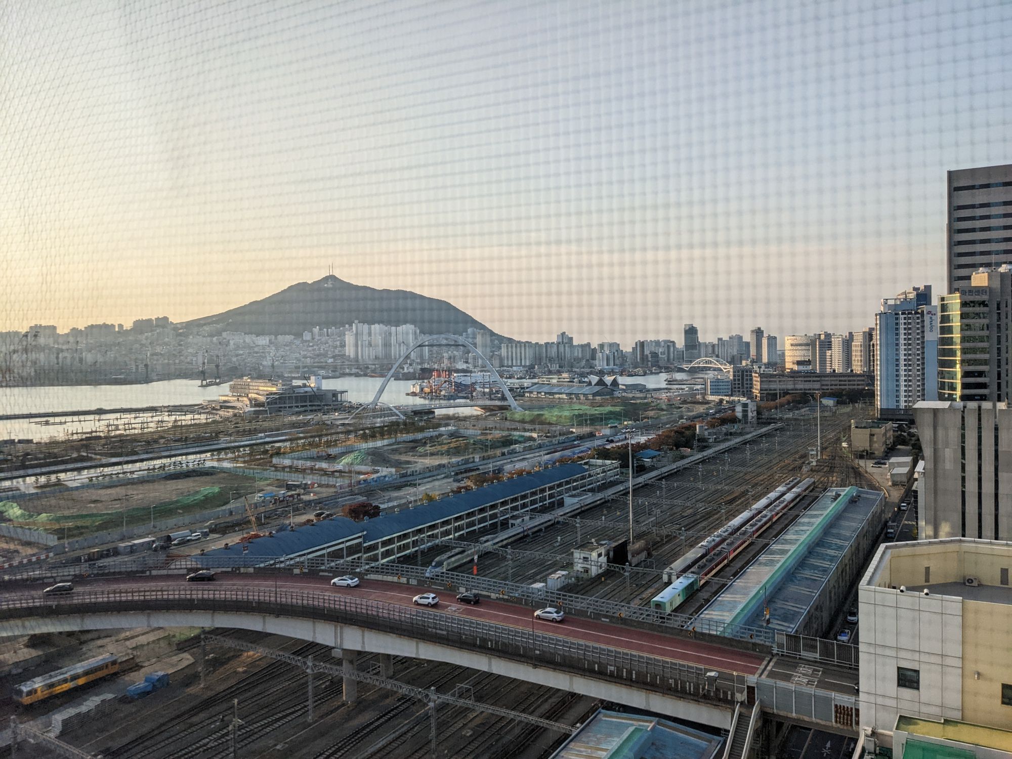 The train to Jeonju left right on time. The landscape was super developed. Not a single farm without greenhouses over every field. Multiple railways criss-crossing the land. A low haze settled over every skyline.